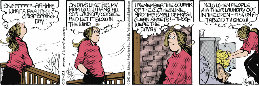 Lynn's Comments: We didn’t have a clothes drier when I was a kid. Everyone put their laundry outside on clotheslines. Apparently, the neighbours really did look at your laundry and made judgments because my mom always put the best sheets and towels on the top line where they could be seen. Everything else was hidden or hung in the basement.